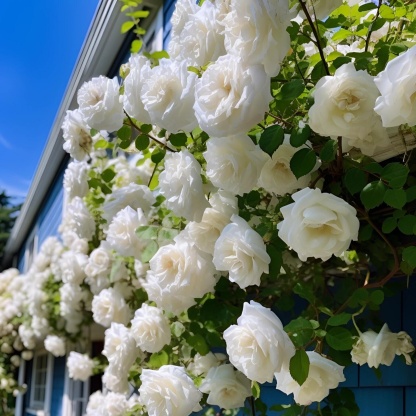 Climbing roses can form a vibrant landscape backdrop for border perennials and annuals. They are also a lovely choice for arbors, trellises, fences, and pergolas. Most varieties will grow from 6- to 12-feet long and will spread about 3- to 4-feet wide.