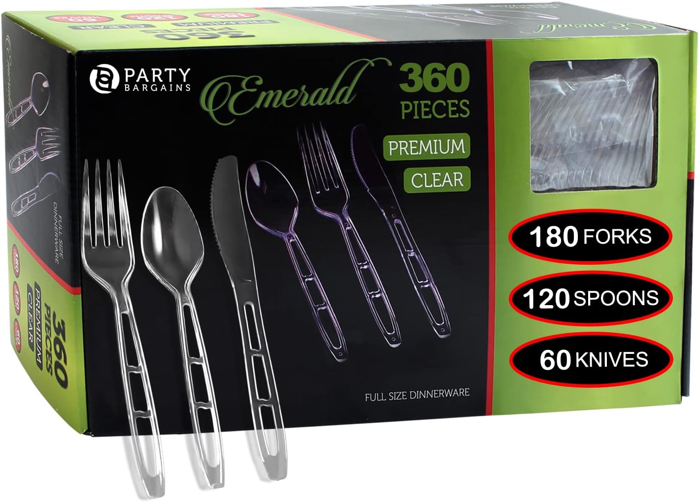 Party Bargains Disposable Cutlery set, SAPPHIRE Design, Clear Color, 360 Pieces: 180 Forks, 120 Spoons, 60 Knives