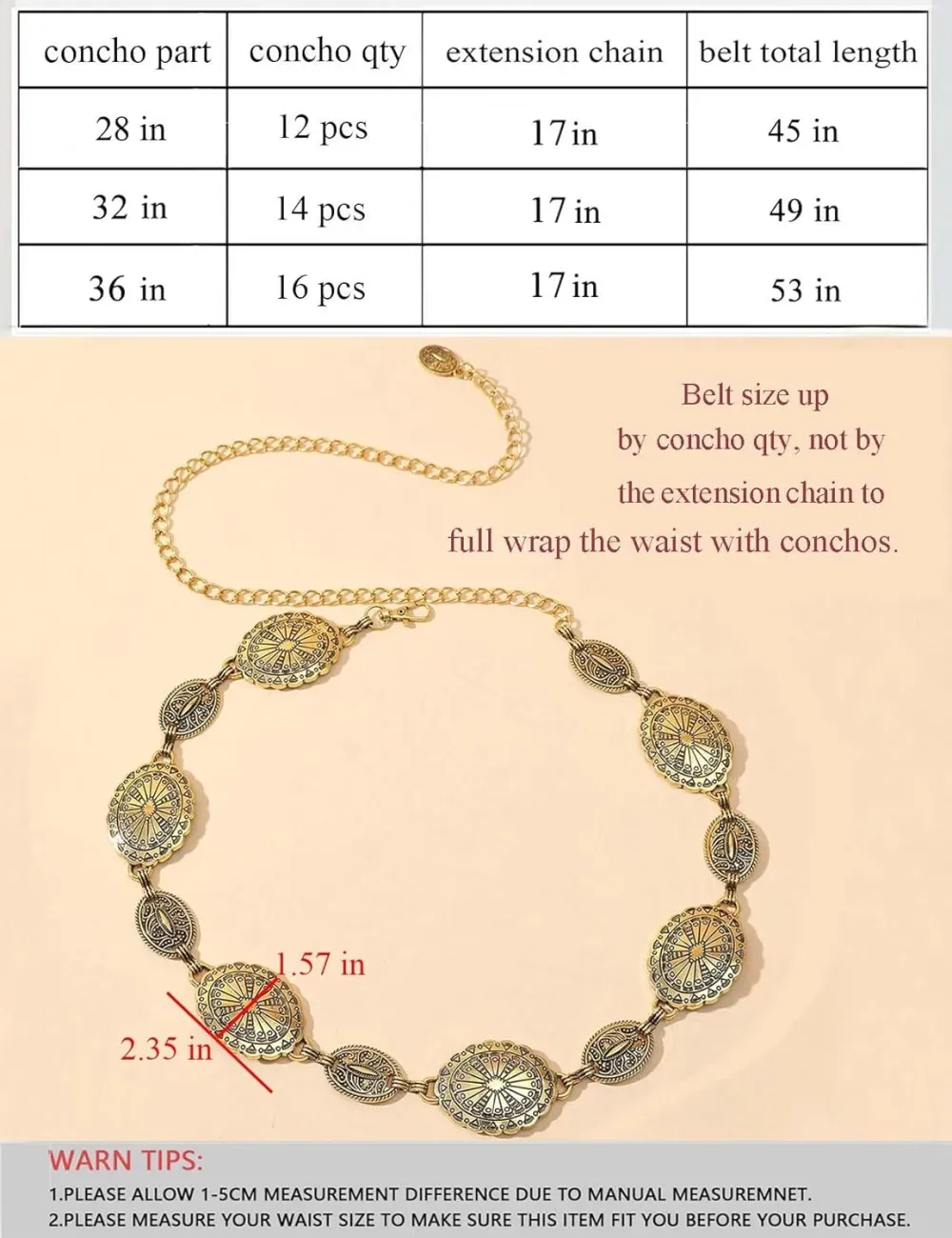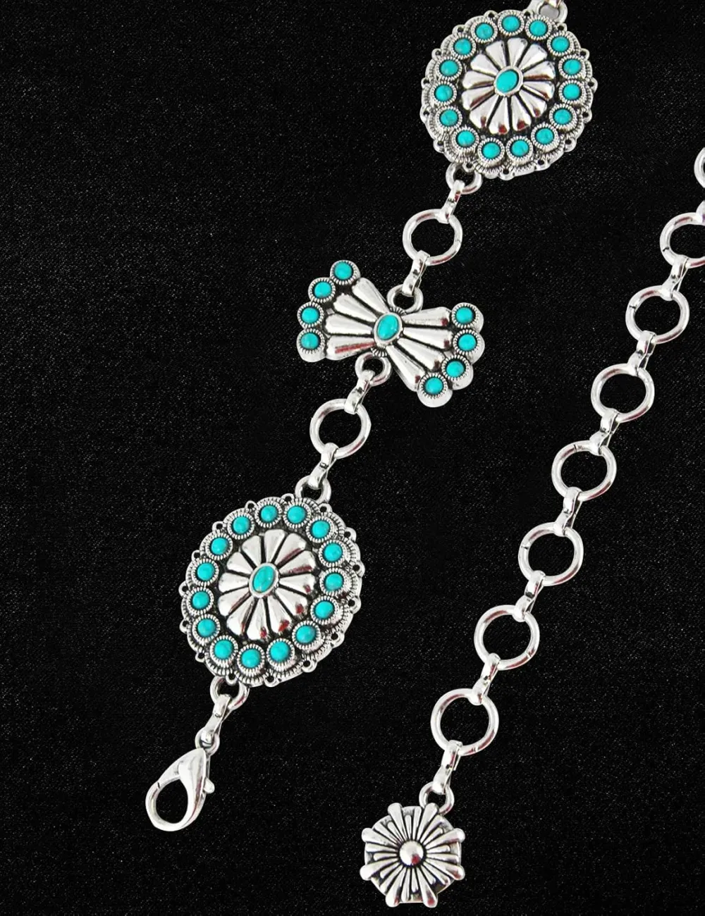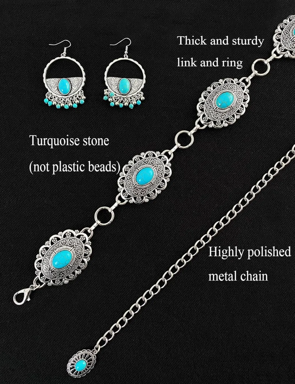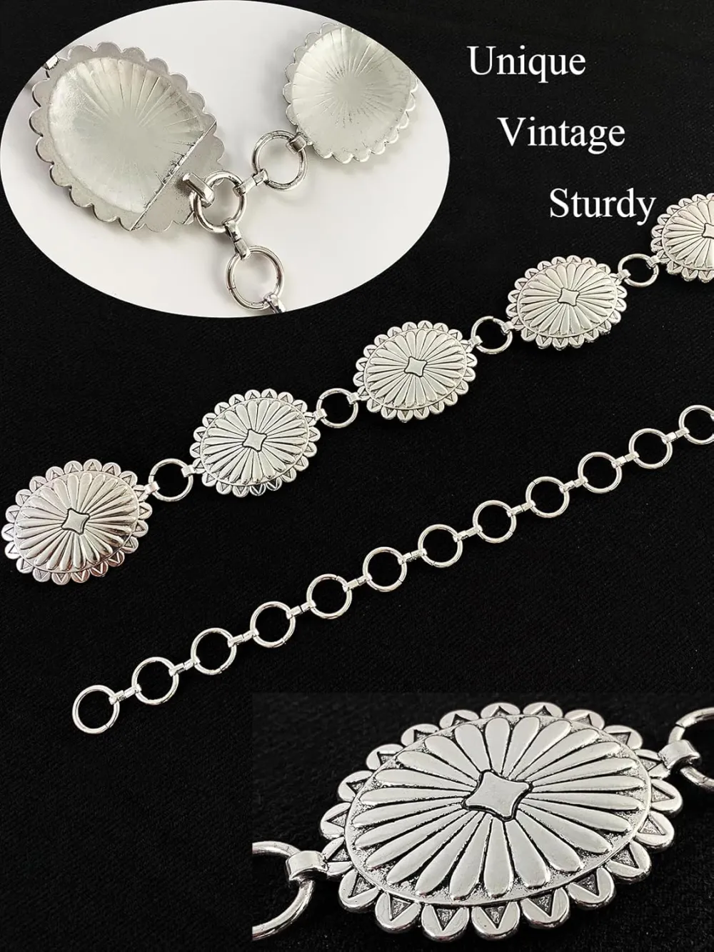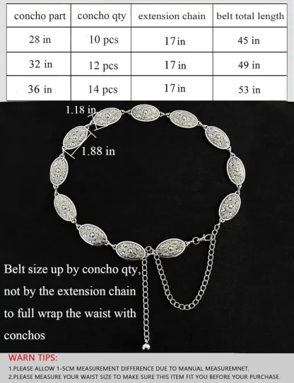 TOPACC Western Metal Concho Belt for Women Cowgirl Chain Belts for Dresses Jeans Country Concert Outfit