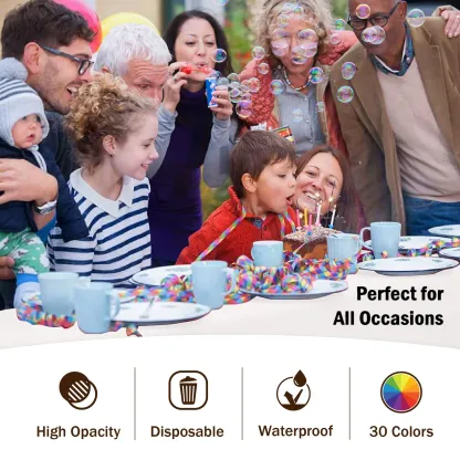 Made from food grade plastic material, our collection of plastic table covers is certain to meet all of your party needs. Transitioning from one event to another is seamless with these disposable tablecloths. Whether it's a birthday bash, wedding reception, or corporate gathering, these covers fit right in, adding a polished look to your setting. The rectangle shape ensures a perfect fit for standard tables, creating a sleek and uniform appearance. Our collection offers extra high opacity for such an affordable price. They are made to withstand spills and protect your tables from scratches throughout the event.